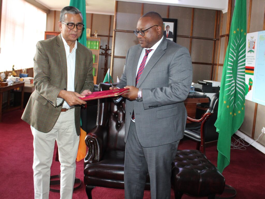 Minister of Foreign Affairs and International Cooperation, Hon. Mulambo Haimbe, S.C., M.P., has received Letters of Commission from Mr. Ershad Hossain Ripon Shikder, the newly appointed Honorary Consul of the Republic of Bangladesh to the Republic of Zambia.