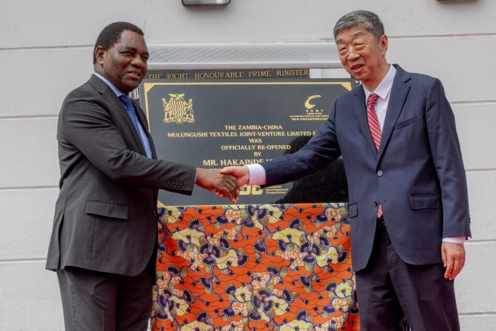 President Hakainde Hichilema has officially reopened the Zambia–China Mulungushi Textiles Plant, marking a significant milestone in Zambia’s industrialisation and economic diversification agenda.