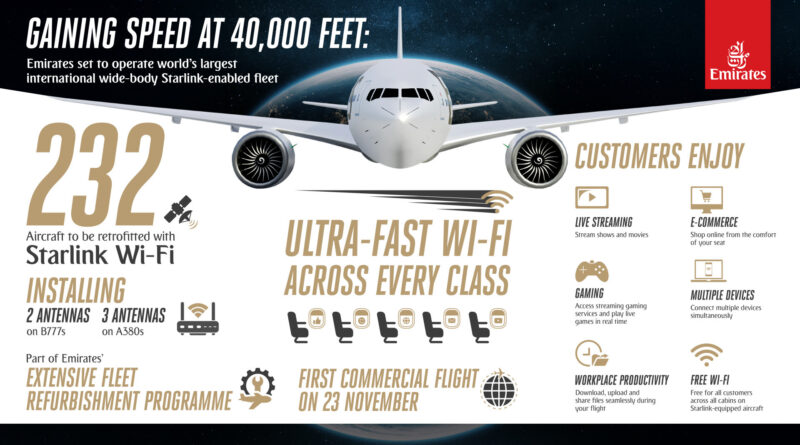 Read MoreEmirates is set to revolutionise inflight connectivity by deploying Starlink Wi-Fi across its entire in-service fleet, beginning with Boeing 777